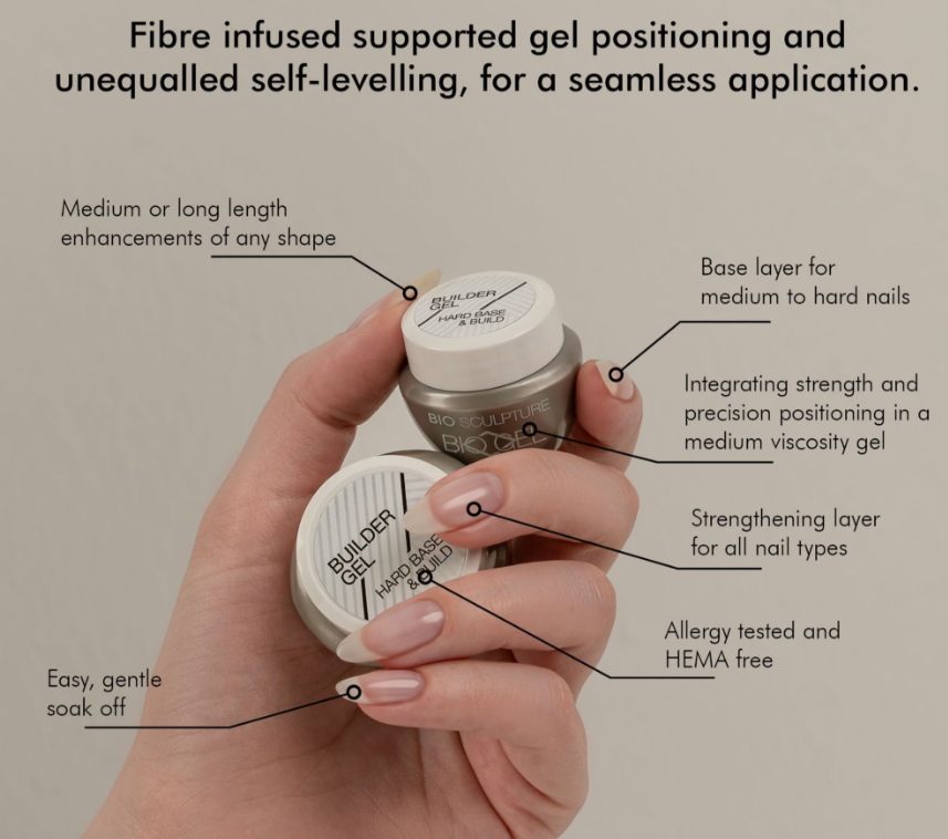 Clinical studies show that 98% of clients experienced fewer stress breaks and 100% reported stronger, healthier nails when using Bio Sculpture Builder Gel.